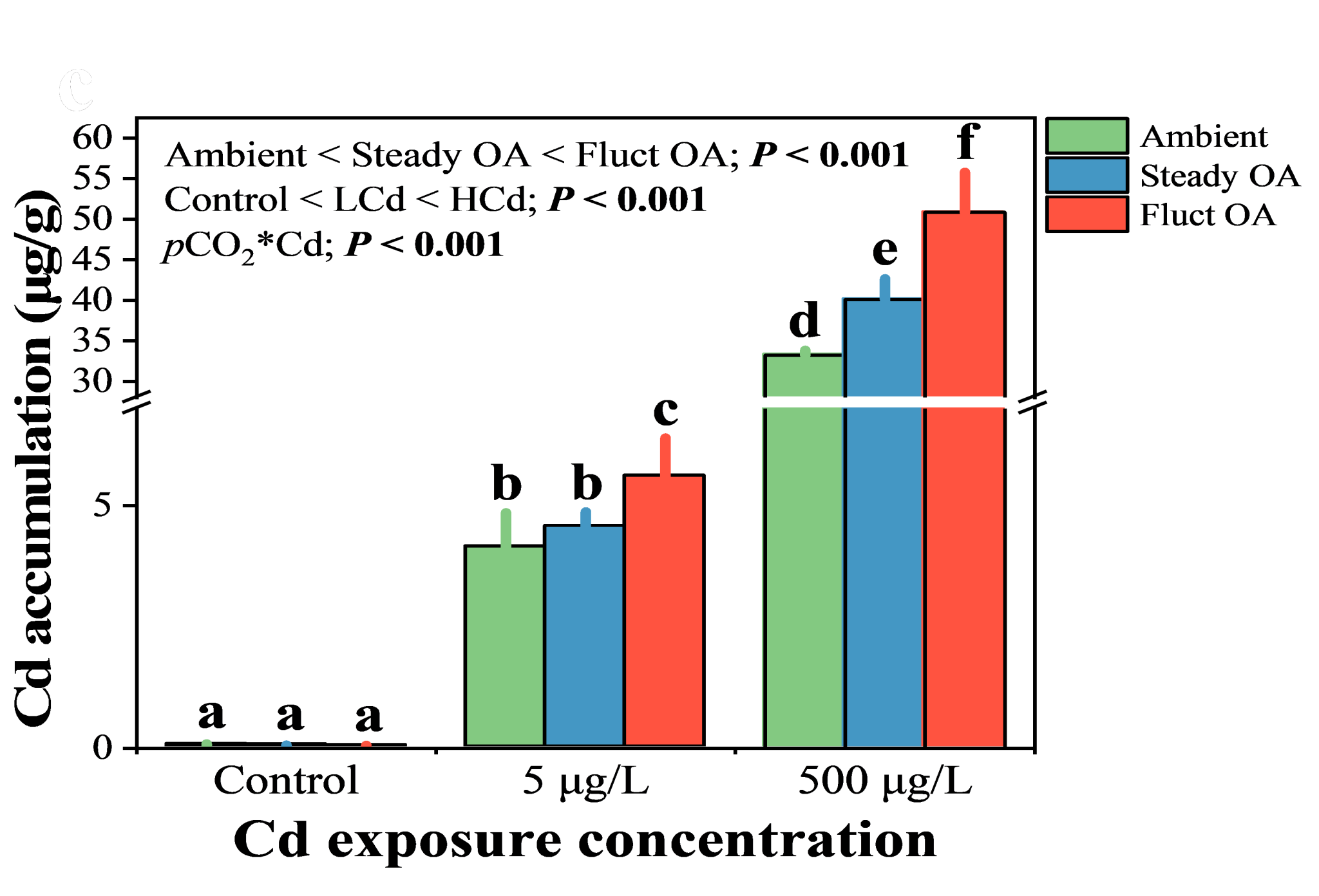 图2. 不同pCO2和镉污染下桡足类体内镉的累积量
