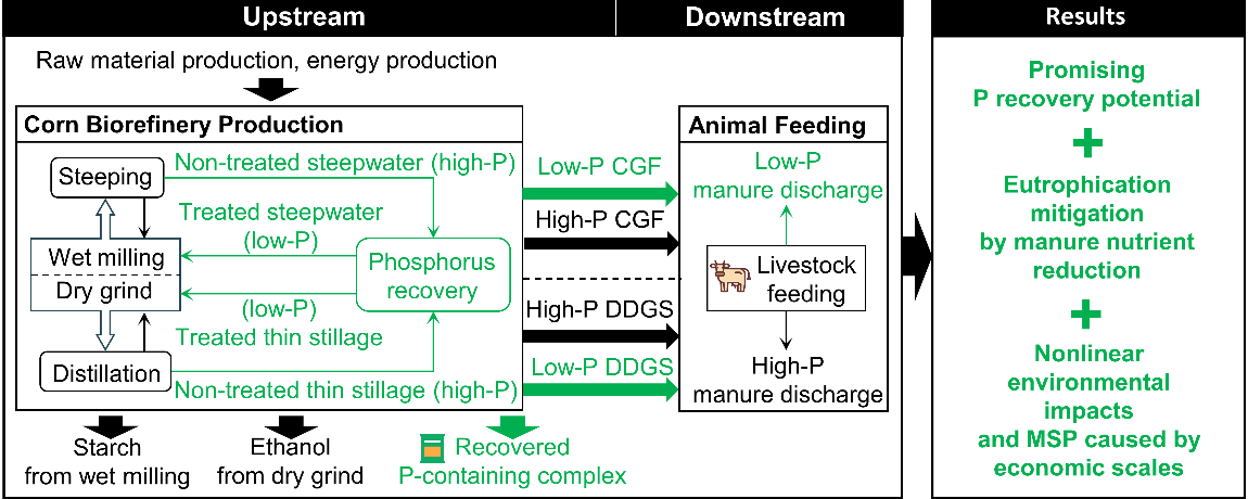 近日,我实验室“环境过程与系统模型”团队李少斌副教授课题组在玉米生物提炼厂(corn biorefinery)磷回收技术的生命周期环境影响和经济可行性综合评估研究中取得新进展,在环境领域国际期刊Resources, Conservation & Recycling发表题为“Phosphorus (P) Recovery from Corn Biorefineries is Promising for Mitigating Environmental Impacts and Promoting the P Circular Economy”的研究论文。该研究针对玉米生物提炼副产物磷含量过量的问题,对玉米生物提炼厂磷回收技术开展生命周期环境影响评价和技术经济可行性分析,扩展了研究系统边界至副产物的磷回收和下游动物粪便的磷排放效应,同时考虑了不同生产规模下的非线性生命周期环境影响,提供了更加综合全面的磷回收技术环境-经济集成分析。