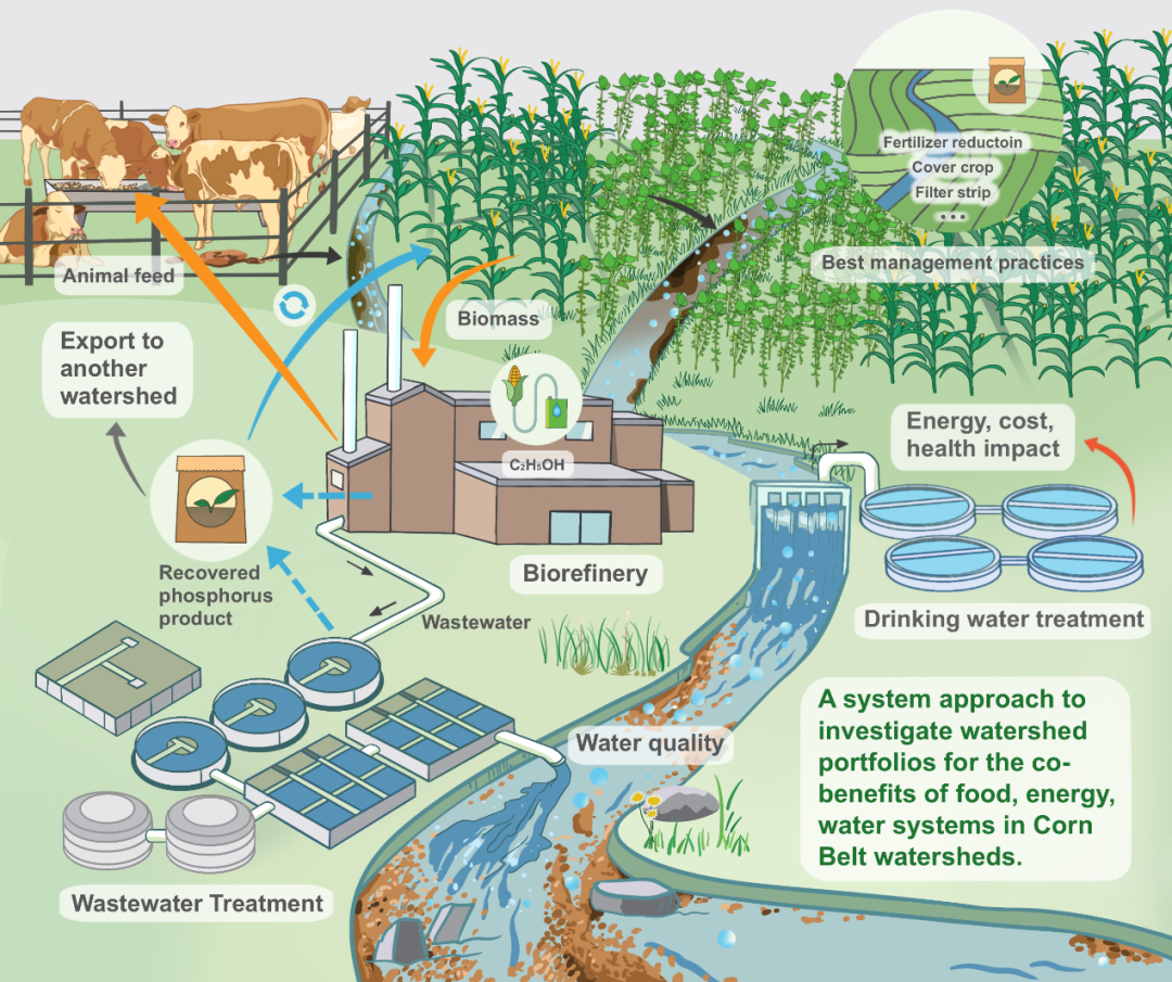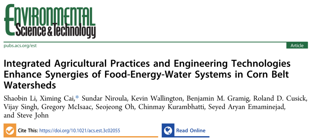 近日,我实验室“环境过程与系统模型” 团队李少斌课题组与伊利诺伊大学香槟分校Ximing Cai团队合作在“粮食-能源-水”关联系统协同调控研究取得新进展,在国际期刊Environmental Science & Technology上发表题为“Integrated Agricultural Practices and Engineering Technologies Enhance Synergies of Food-Energy-Water Systems in Corn Belt Watersheds”的研究论文。该研究探讨了农业最佳管理实践和环境与生物工程磷回收技术组合对美国玉米带流域“粮食-能源-水”关联系统的协同调控机制。