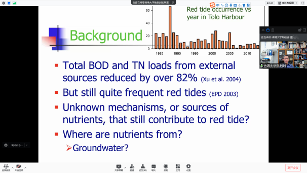 10月30日,由我院黄邦钦教授和陈能汪教授共同召集的厦门大学环境与生态香山论坛(以下简称“香山论坛”)第57讲“流域-河口-近海环境变化与生态系统响应”,在厦门大学思明校区曾呈奎楼顺利举行。论坛采用线上线下同步的方式进行。来自伊利诺伊大学香槟分校、香港大学、中科院南京地理与湖泊研究所、浙江大学、中科院城市环境研究所、华东师范大学、南方科技大学的专家学者,以及我校海洋与地球学院和我院师生共100余人参加了论坛。