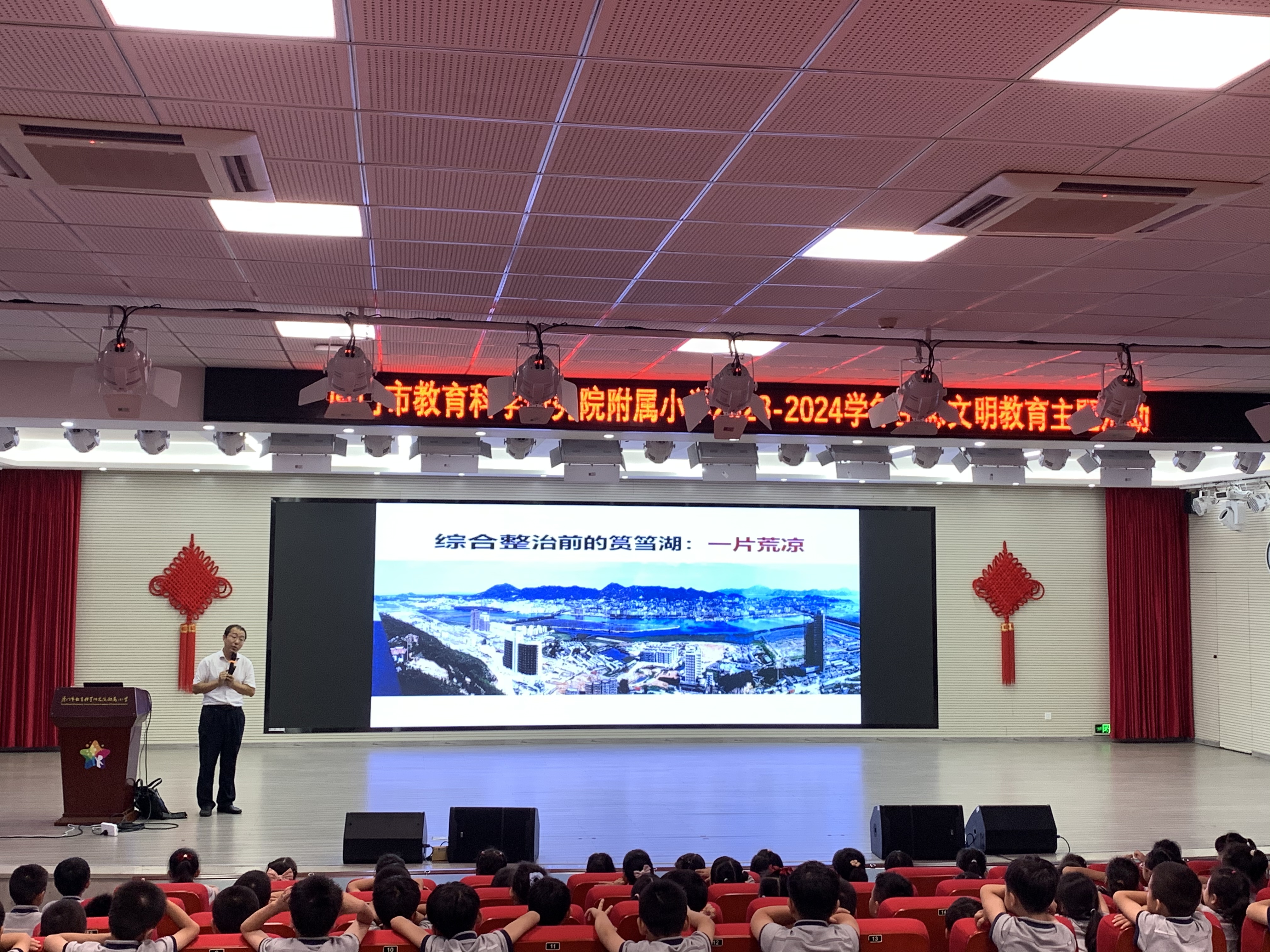 10月19日,我实验室黄凌风教授走进厦门市教育科学研究院附属小学,为该校二、三年级学生开展题为《“从筼筜渔火”到“筼筜月色”》的生态文明教育主题讲座,用亲切对话方式、通俗易懂语言和丰富生动的素材,向同学们呈现了筼筜湖从鱼虾灭绝的臭湖变成厦门“高颜值城市会客厅”的华丽转身历程,受到了大家的欢迎和喜爱。