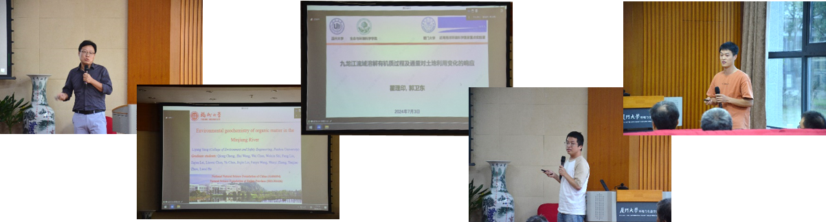 中科院城市环境研究所的胡安谊研究员、福州大学的杨丽阳副教授、温州大学的瞿理印博士、厦门大学刘璐博士和王义冲博士生,分别就微生物组和抗性组对人类活动的响应机制、溶解有机质过程及通量对土地利用变化的响应、病毒介导细胞裂解和微生物群落结构、藻华过程的物理生物耦合模型研究等议题进行了报告。论坛报告精彩纷呈,展示了新发现、新观点,引发了现场师生的热烈讨论。