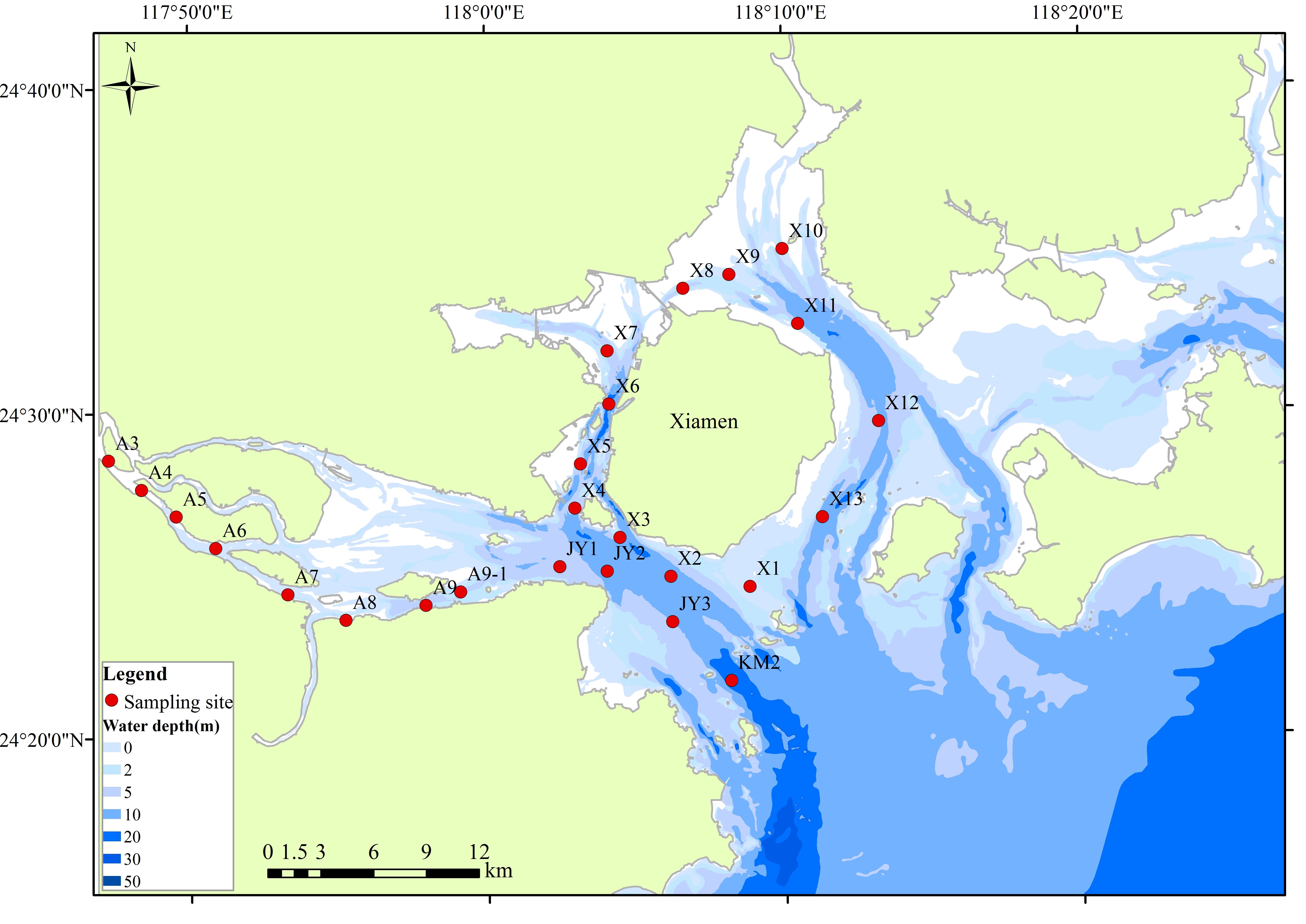 2021428日,厦门湾观测顺序:X8~X9~X11~X12~X13~X1~X2~X3~X4~X5~X6~X7